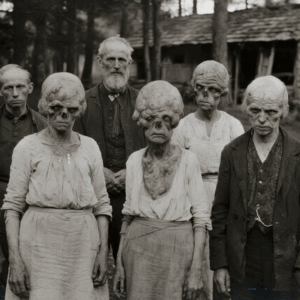 El interior era oscuro y apestaba a enfermedad y cuerpos sin lavar. Samuel se encontró en una sala común atestada de quizás 22 personas, desde un niño pequeño hasta una anciana cuya columna vertebral estaba deformada en forma de S. Cada persona presentaba signos visibles de graves defectos genéticos. Sin embargo, a pesar de las diversas dolencias, todas compartían rasgos inconfundibles: la misma nariz distintiva, los mismos pómulos altos y los mismos inquietantes ojos de un ámbar pálido.