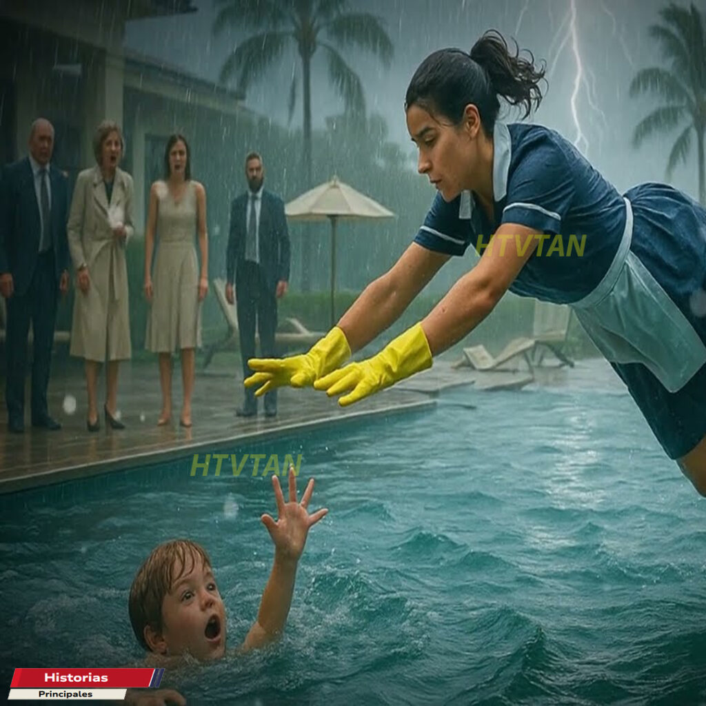 ” Le respondieron varias voces al mismo tiempo, como si se hubieran puesto de acuerdo para encontrar excusas. Carmen miró hacia la piscina de nuevo. Diego ya había tocado el fondo y su cuerpecito permanecía inmóvil. Ya no había tiempo para discusiones ni para buscar ayuda profesional. era ahora o nunca. Sin pensarlo dos veces, Carmen se quitó los zapatos y se tiró al agua completamente vestida. El agua helada la golpeó como una bofetada, pero no se detuvo. La lluvia seguía cayendo con fuerza y los rayos iluminaban el cielo, pero a ella no le importaba nada más que llegar hasta ese niño.