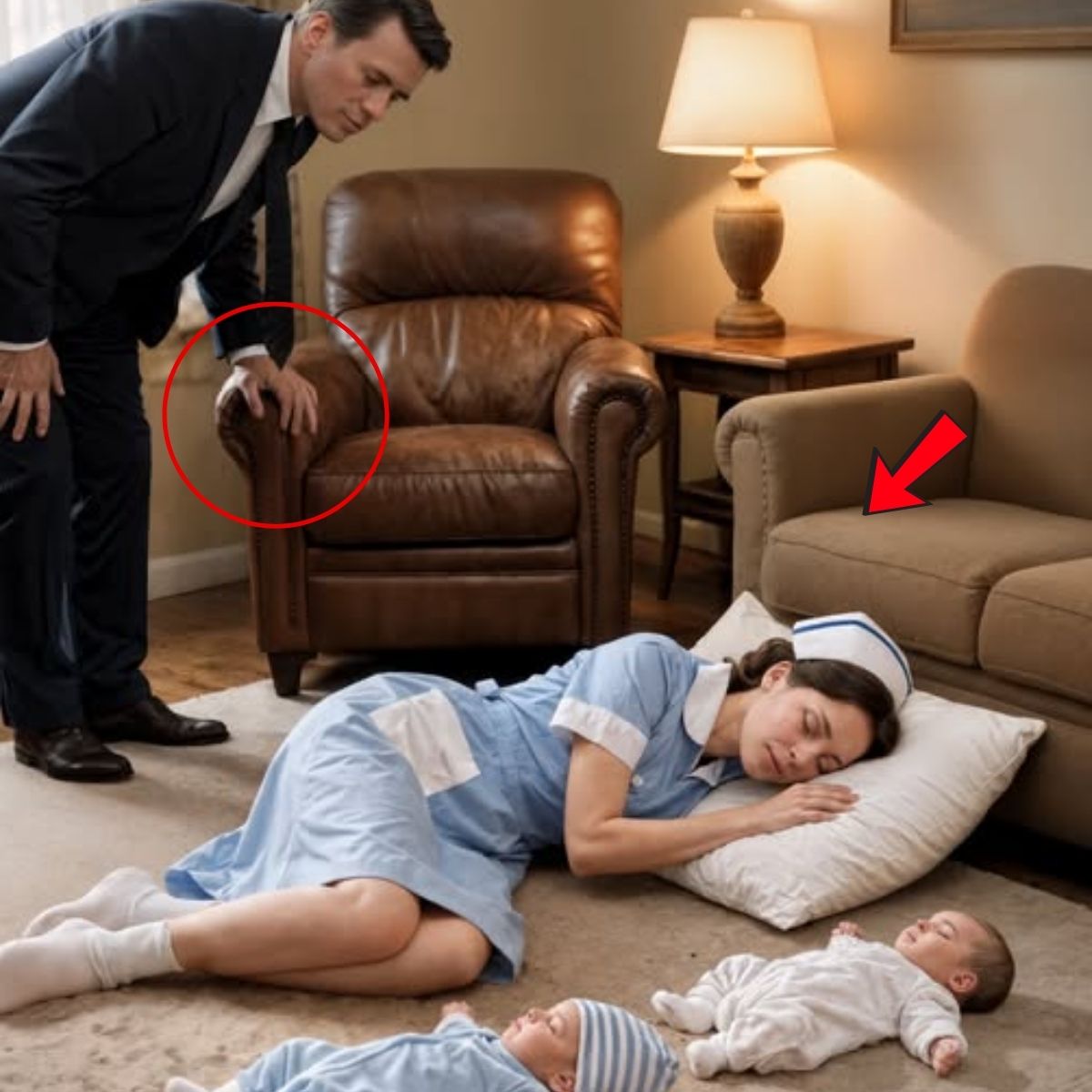 El millonario entró a medianoche — y se quedó helado al ver a la empleada doméstica dormida junto a sus gemelos