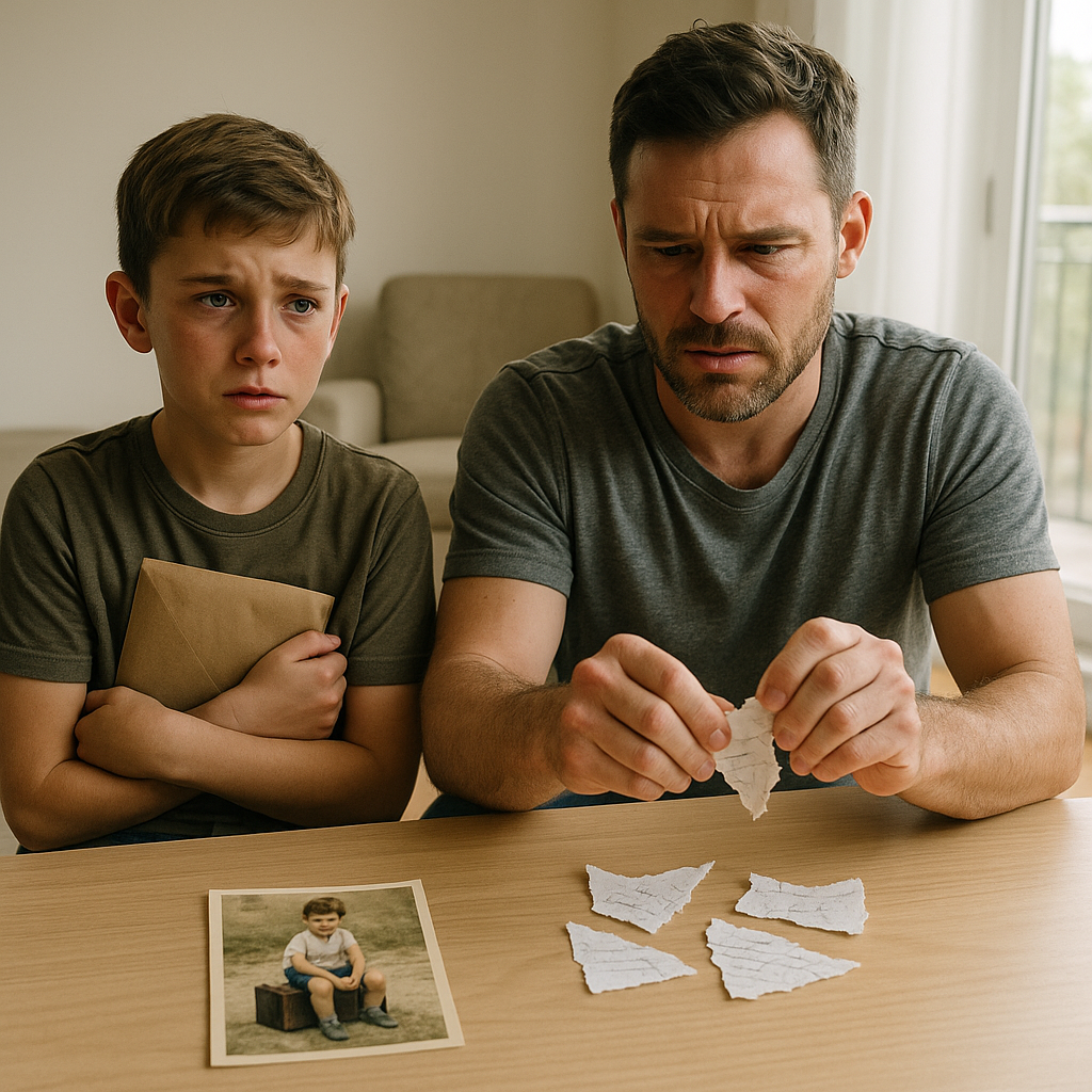 «El papel pequeño y doblado», dijo. «Se cayó cuando abrí tu cartera para buscar una dirección. No la leí toda, lo juro, pero vi… ‘Siento no haber sido un mejor padre’.»