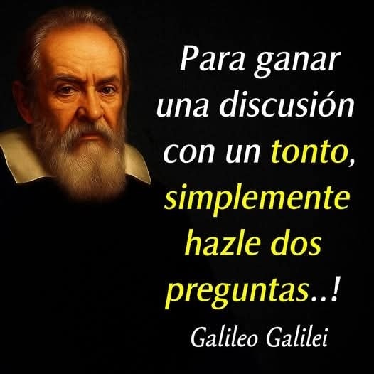Imagen: Retrato de Galileo Galilei junto a la frase: “Para ganar una discusión con un tonto, simplemente hazle dos preguntas…!”