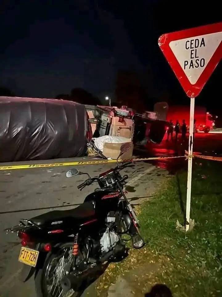Un camión de carga se encontraba volcado, como una bestia gigante vencida por el destino, bloqueando el camino. A pocos metros, una motocicleta negra permanecía intacta, estacionada de forma extraña, como si su dueño hubiera desaparecido de un instante a otro.