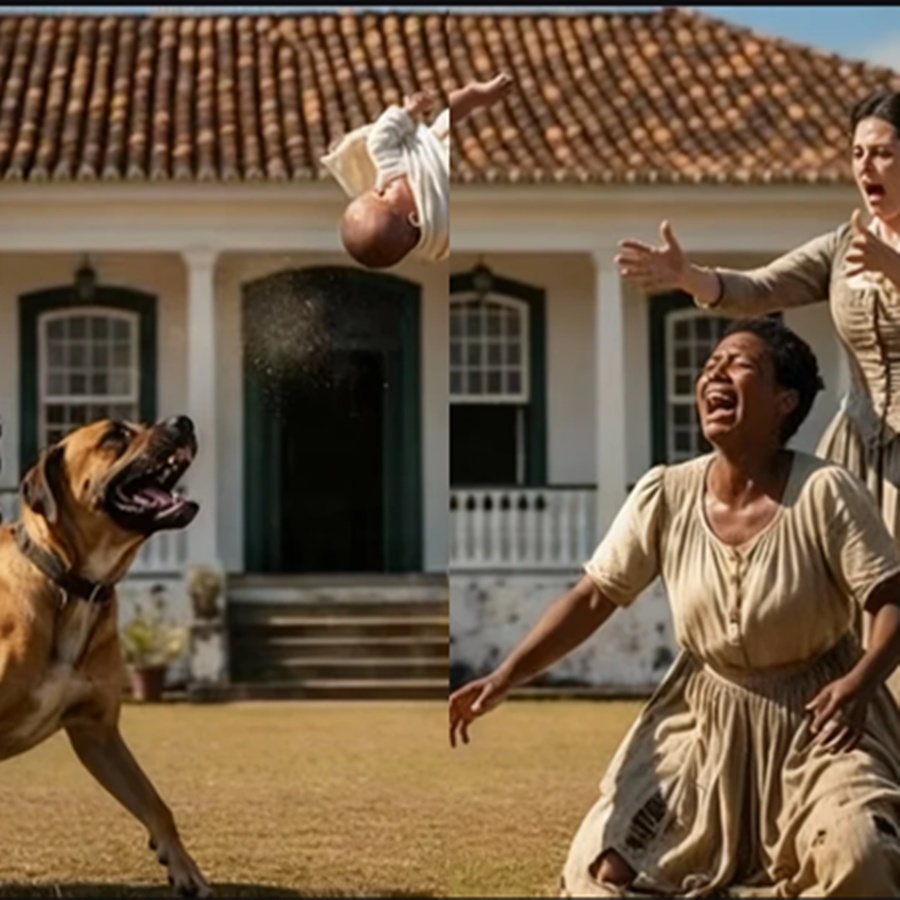 Hacía apenas tres días, esa misma rabia había nacido. Movida por celos delirantes y rumores de brujería africana, Dona Mariana había arrancado al pequeño Benedito, de solo ocho meses, de los brazos de Joana mientras lo amamantaba. Ignorando las súplicas desesperadas de la única madre que el bebé conocía, Mariana, con los ojos inyectados en odio, arrojó al niño inocente directamente a las fauces de sus tres mastines españoles hambrientos.