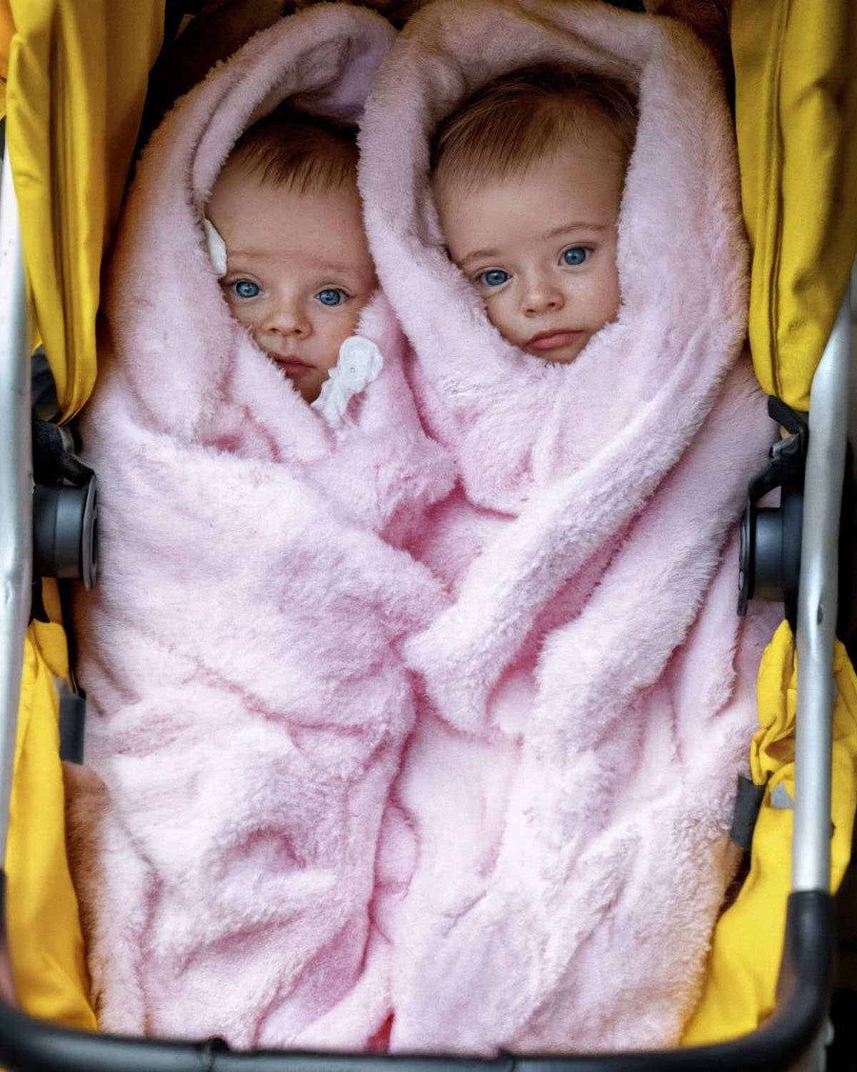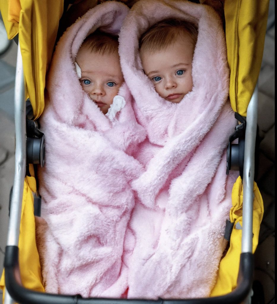 Uno lloriqueaba suavemente, agitando los puños en el aire. El otro dormía pacíficamente, su diminuto pecho subiendo y bajando bajo una manta amarilla desvaída.