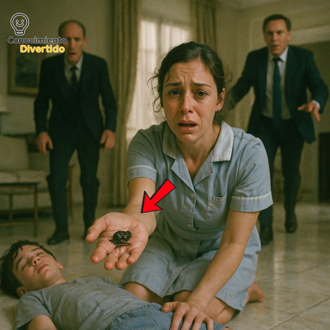 El hijo del millonario yacía inmóvil sobre el suelo de mármol, con los ojos cerrados y el cuerpo frío por el susto, mientras la empleada del hogar se arrodillaba a su lado con las manos temblando, sujetando algo pequeño, oscuro… y que se movía.