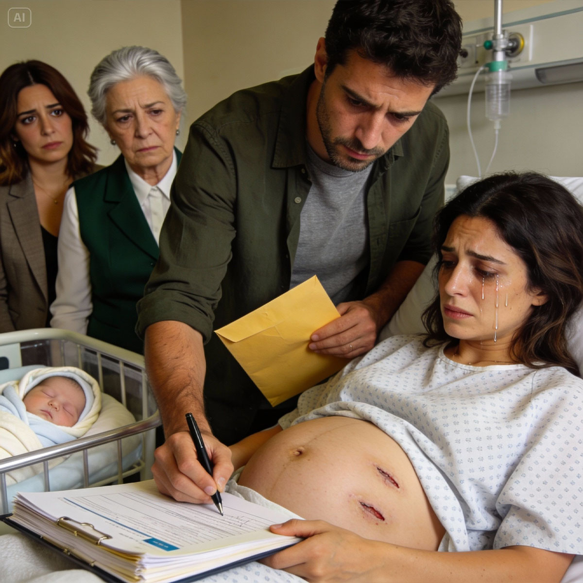Las hojas cayeron sobre mi cama como si fueran basura. Yo todavía tenía el vientre abierto por la cesárea de emergencia. Había sangre seca en la sábana, y el dolor me atravesaba cada vez que intentaba incorporarme. Mi hijo dormía en una cuna transparente junto a mí, tan pequeño que parecía de cristal.