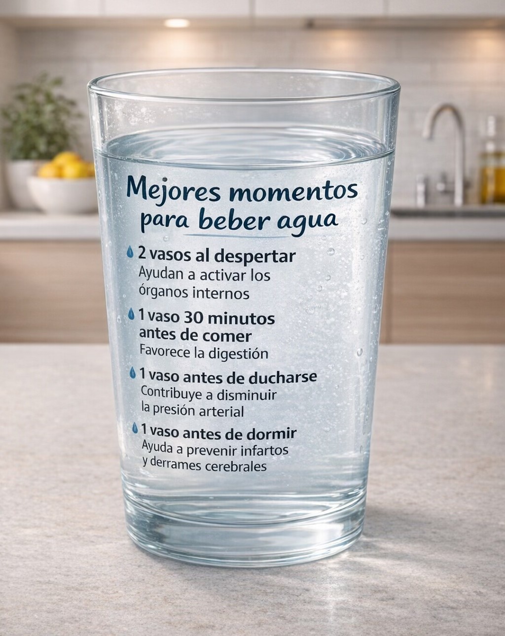 🚿 Previo a la ducha (1 vaso): estimula la circulación y puede ayudar a mantener niveles saludables de presión arterial.