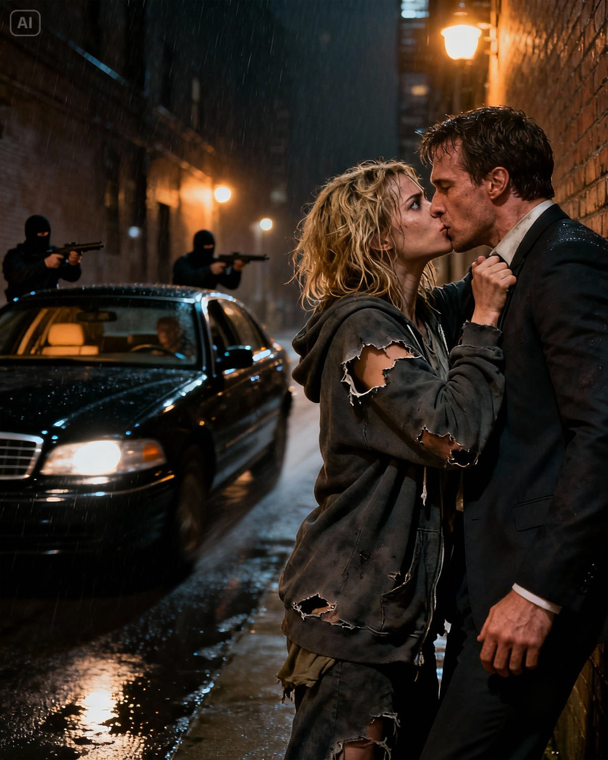 «Quédate quieto, no digas nada, estás en peligro». La joven sin hogar jaló al magnate a un rincón y lo besó para salvarle la vida… y el final…
